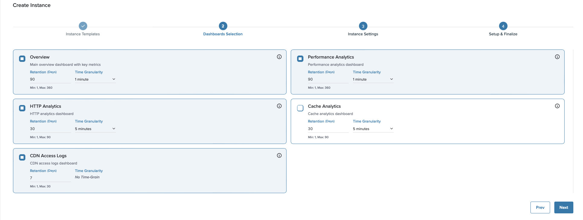 Currently, users can request custom dashboards through Medianova Support. Future releases will include user-defined dashboard templates.
