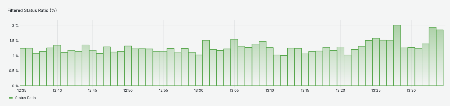 4xx–5xx Ratio (time series): Percentage of client and server errors over time.