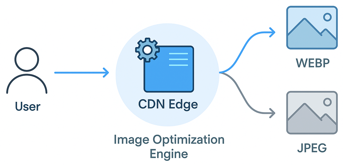 <table><thead><tr><th width="195">Format</th><th width="354">Served To</th><th>Benefit</th></tr></thead><tbody><tr><td><strong>WebP</strong></td><td>Supported browsers (Chrome, Edge, Opera, Android)</td><td>25–35% smaller files than JPEG/PNG</td></tr><tr><td><strong>Fallback (JPEG/PNG)</strong></td><td>Unsupported browsers (Safari, older versions)</td><td>Preserves compatibility</td></tr></tbody></table>