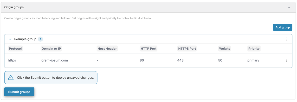 You can add more origins to the same group or create additional groups by clicking **Add group** again.