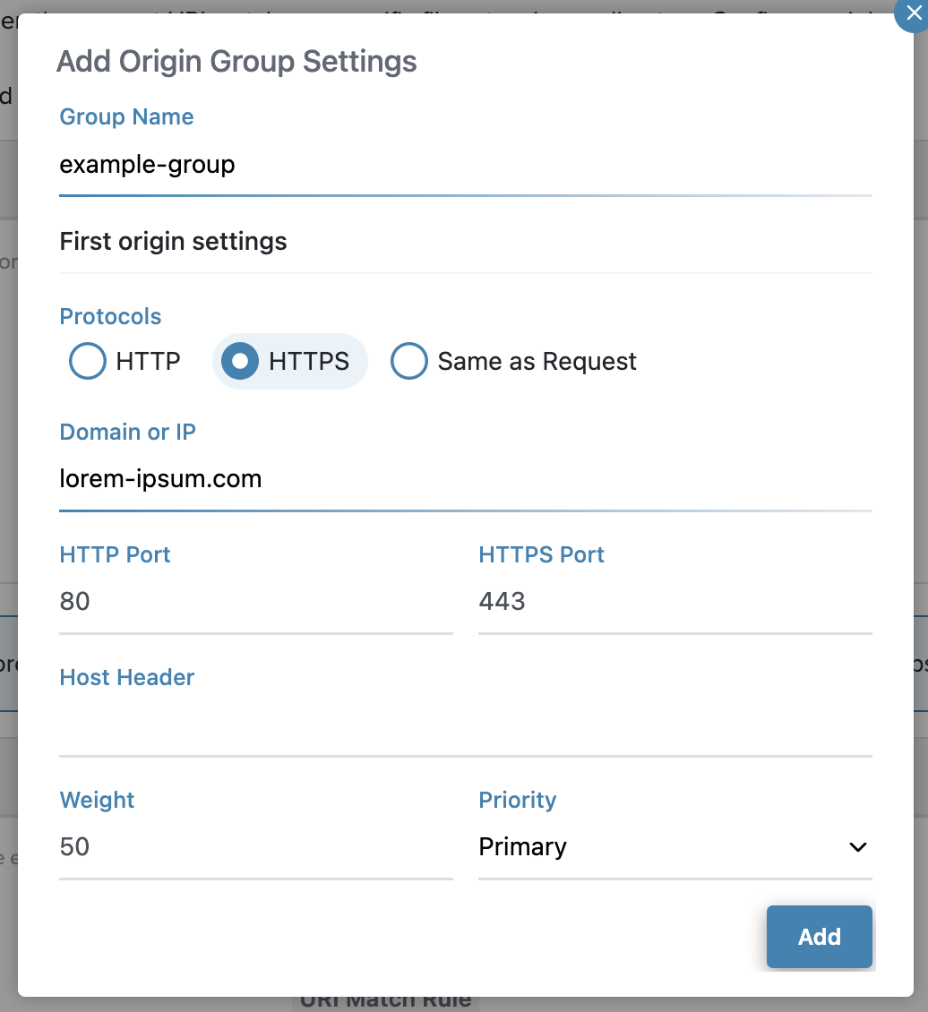 * **Host Header** – *(Optional)* Define a custom Host header if the origin requires it.