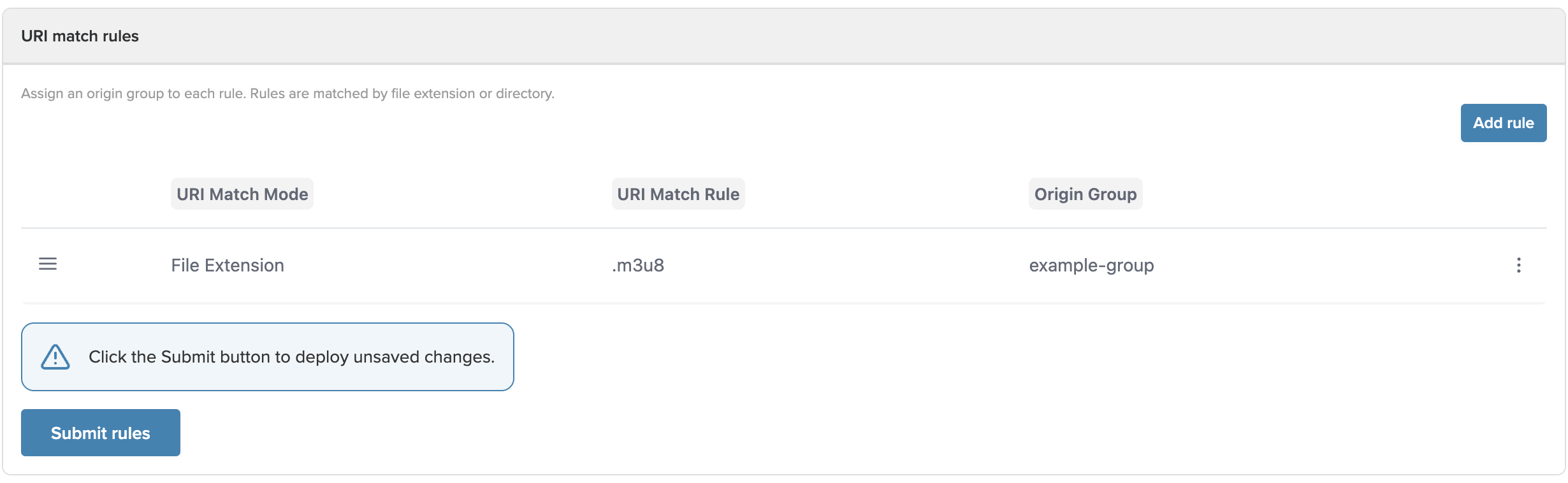 After creating origin groups, define URI match rules to route traffic to the appropriate group.
